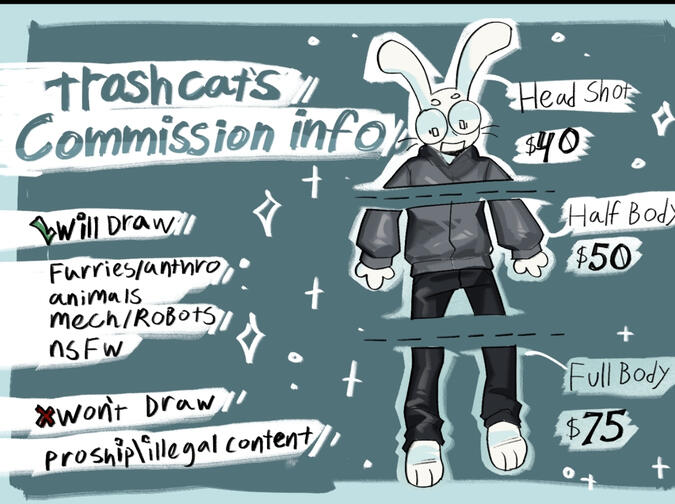PLEASE DO NOT ASK ABOUT COMMISSIONS ON POSTS COMMENTS. PLEASE DM OR MESSAGE ME AND ACTUALLY READ THIS PAGE OR ELSE I WILL ASSUME YOU ARE A BOT/SCAM.commission info: